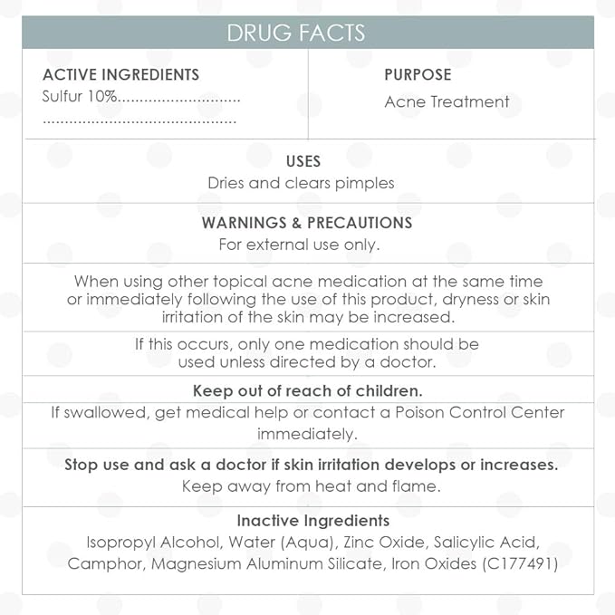 - Infused with Salicylic Acid and Zinc Oxide: This acne lotion contains active ingredients that help exfoliate dead skin cells, allowing the all-natural drying agents to sink deeply into the pores to treat and soothe the skin.