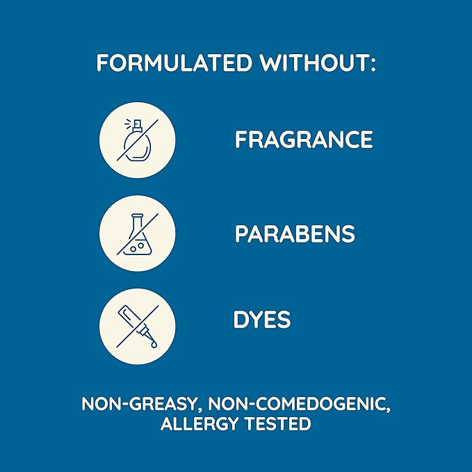 - The non-greasy, non-comedogenic formula of this skin relief moisturizing lotion has been allergy tested and is specially formulated for sensitive skin and is free of fragrances, para-bens and dyes