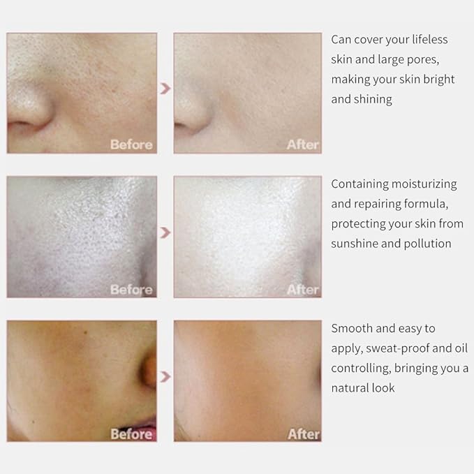 - Concealer: Effectively moisturing and oil control, cover up skin flaw such as rough pores, dark circle, fine lines, freckles, aging spots etc.