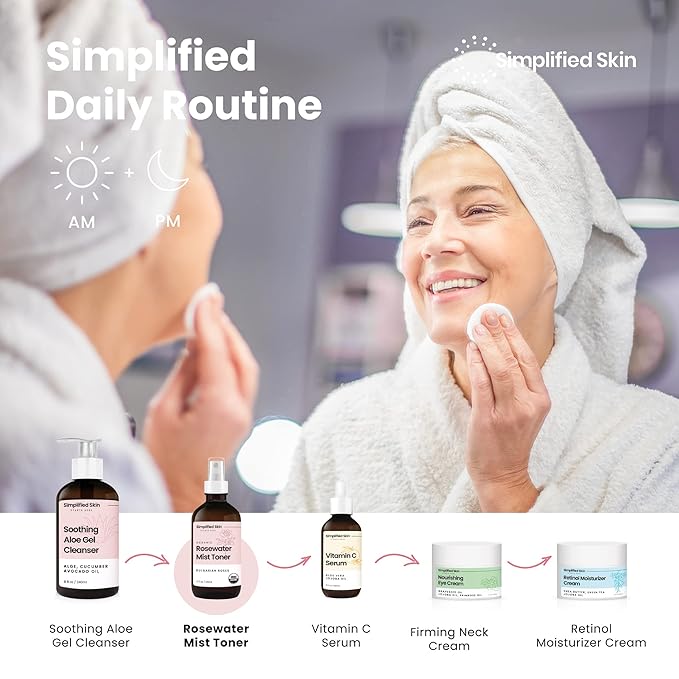 - USDA-Certified Organic Rose Water Spray for Face: Simplified Skin's hydrating rosewater spray can be used across your beauty routine, offering soothing hydration and refreshing benefits for the face, body, and hair with every spritz.