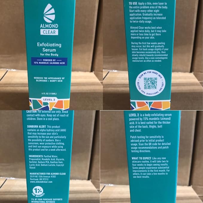 Level 2 Serum | Mandelic Acid Body Serum for Acne, Folliculitis, Aging Skin, Ingrown Hairs, Dark Spots on Face, Chest, Butt, Back, Thighs, Arms | 4 oz