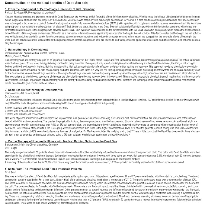 - Published studies show that 80%-90% of patients undergoing Dead Sea mineral treatments experience significant improvement in skin conditions