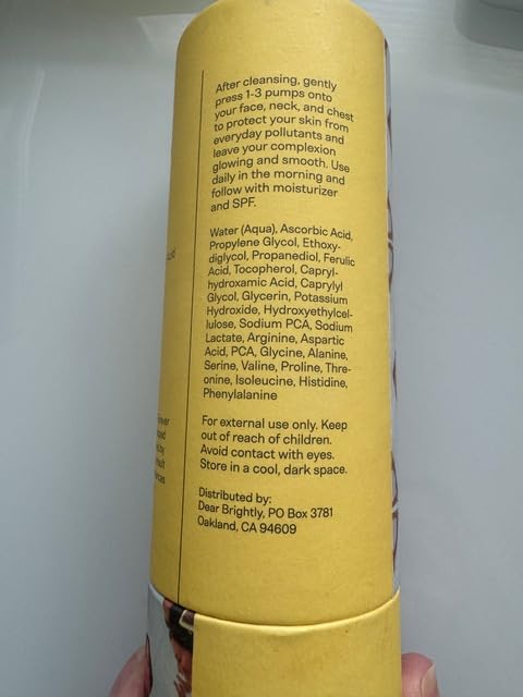 Vitamin C Serum with Ferulic Acid and Vitamin E for Glowing Radiant Skin by Dear Brightly, Liquid Cloak Facial Serum for Sensitive Skin, Refillable Glass Bottle, 0.7 fl oz