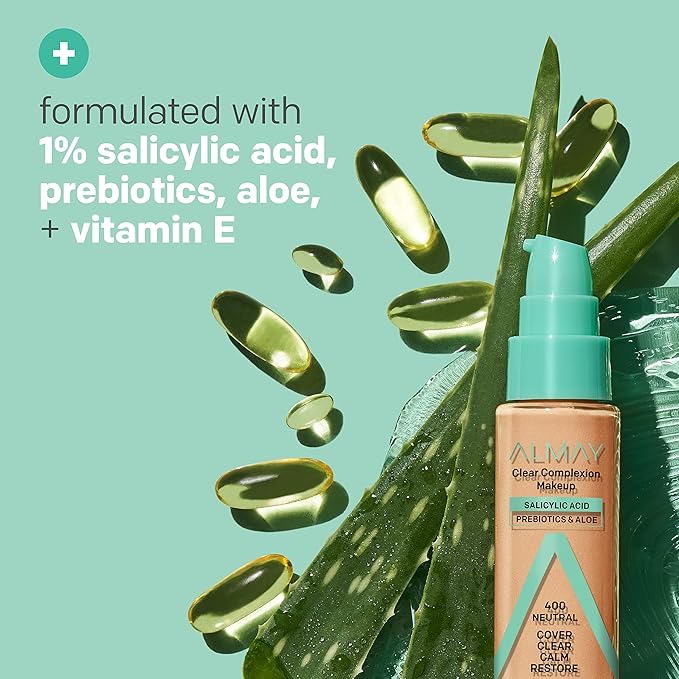- NEW SKIN CARING INGREDIENTS: The reformulated acne foundation includes prebiotics to support a healthy skin barrier for a well balanced complexion, as well as aloe vera that hydrates skin, helping to soothe and calm