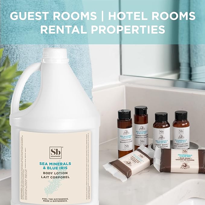 Soapbox Body Lotion, Sea Minerals & Blue Iris Moisturizing Body Cream, Vegan, Natural & Cruelty Free Hydrating Hand Lotion Refill for Dry Skin - Gallon Size for Home & Professional
