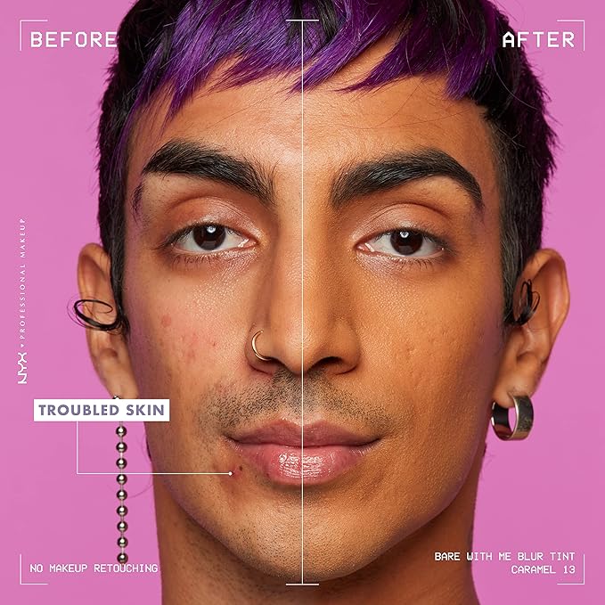 NYX PROFESSIONAL MAKEUP Bare With Me Blur Skin Tint Foundation Make Up with Matcha, Glycerin & Niacinamide - Caramel