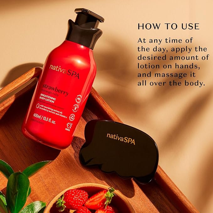Nativa SPA by O Boticário, Ruby Strawberry Antioxidant Body Lotion, Brightening Vitamin C and Nourishment for Radiant Skin, 13.5 Ounce