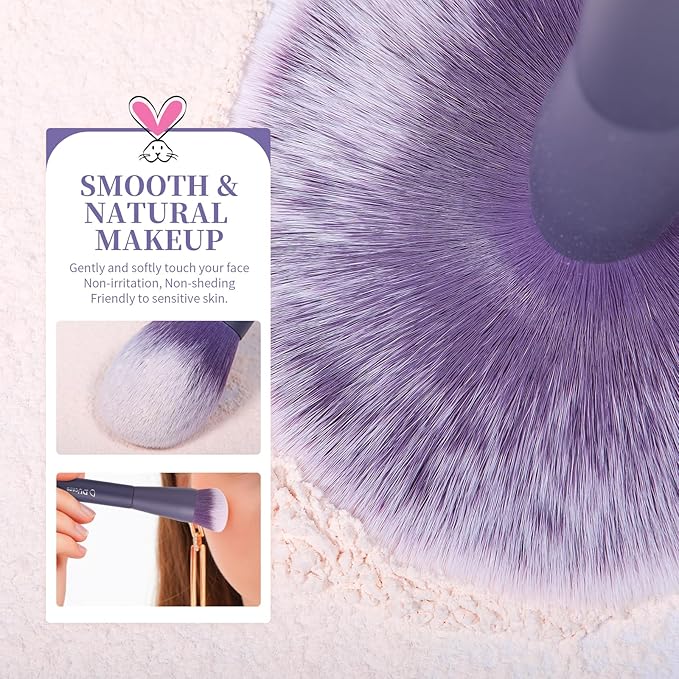 - 💜Elegant Design, Excellent Gift: Stunning Luxury Purple handles paired with soft synthetic bristles create a visually striking, high-end aesthetic. The curved design elevates its luxurious appeal. Designed for gifting, this brush set arrives in a gift box perfect for holidays like Christmas, Valentine's Day, Mother's Day, New Year, or Thanksgiving Day. It's a thoughtful gift for women, girls, makeup lovers, brides, or beauty enthusiasts who value style and ethics.