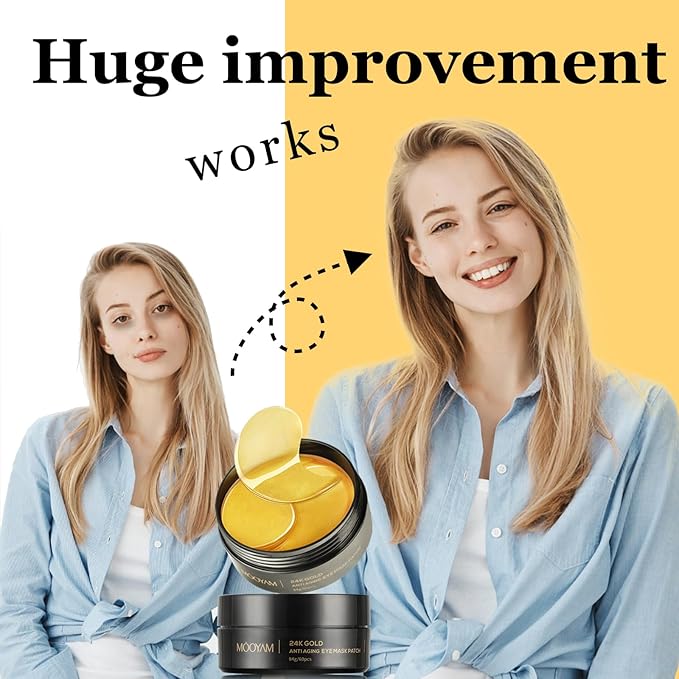 - 24K Gold Effect: gold eye mask is one of the most popular eye masks on the market, not just only like this eye mask's gold color, it’s most important this gold under eye patches have a huge improvement for problematic skin. Especially when it comes to anti-aging.