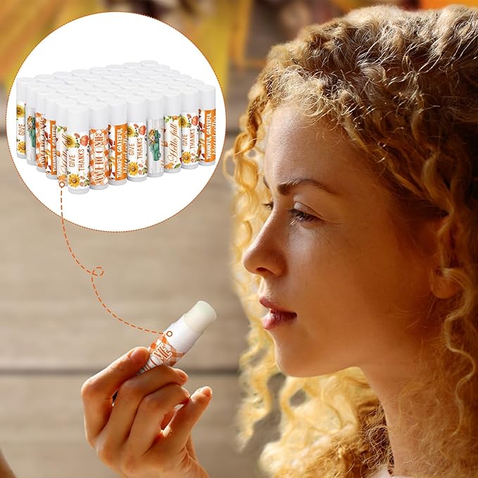 50 Pack Hello Fall Thanksgiving Party Gifts Favors Bulk Lip Balms Gifts Small Thank You Appreciation Gifts Thanksgiving Christmas Stuffers for Women Men Staff Coworkers
