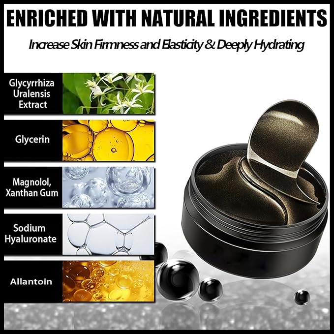 60 Pcs Under Eye Patches, 24K Gold Eye Masks, Collagen Anti Aging Eye Gel Pads, Moisturizing Eye Treatment for Puffy Eyes, Dark Circles, Wrinkles, Fine Lines, BLACK PEARL