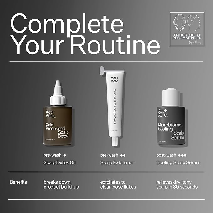 ACT+ ACRE Microbiome Cooling Scalp Serum - Instant Relief for Dry Itchy Scalp & Loose Flakes - Peppermint Oil & Amino Acid for Scalp Balance - Natural, Vegan, Paraben-Free Formula - 2.2 fl oz