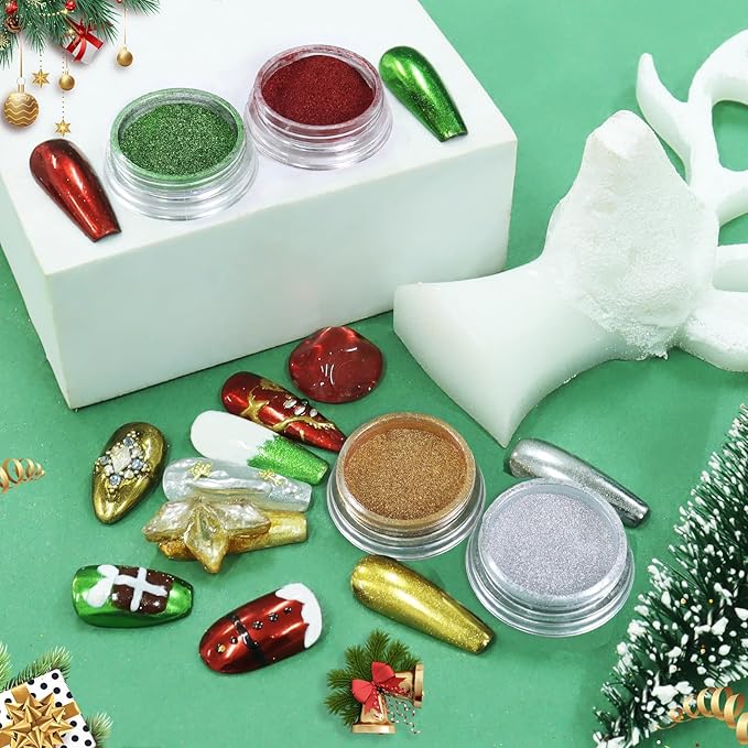 - Package Content: You will receive products including 4 jars of holographic manicure pigment in 4 colors and 4 eyeshadow sticks. Net content 1g(0.4oz)/jar, it can be applied for 120 nails and more. Just a little powder to get an amazing effect.