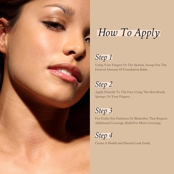 - 【EASY TO APPLY】 The tinted face balm foundation is easy to apply and put on. Blend and build to your desired coverage using a beauty sponge or dense foundation brush and use a patting motion to create the fullest coverage.