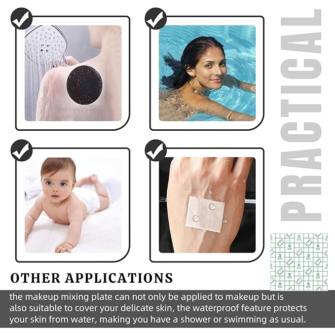 - Widely Used:The adhesive dressing tape can be used as a disposable palette, you can also use it to cover your small wounds, and the waterproof material can protect your skin from water, allowing you to shower or swim as usual.