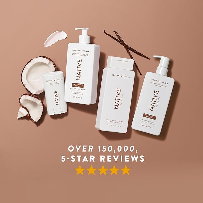 Native Body Lotion Contains Naturally Derived Plant-Based Moisturizers for Women and Men | Restores Dry Skin, Coconut & Vanilla, 16.5 fl oz