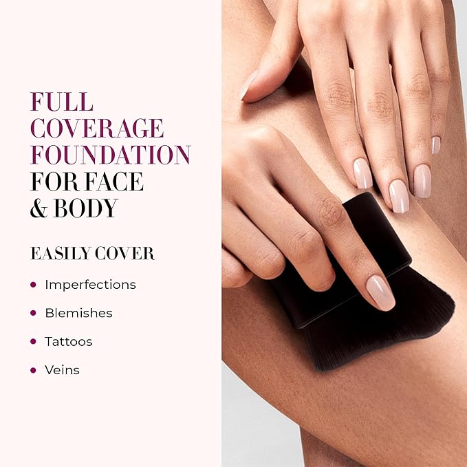 - Long-Lasting Foundation: This full coverage foundation is resistant to water and sweat. It blends seamlessly with the skin to minimize fine lines and texture for an airbrushed appearance that conceals tattoos, veins, redness, scars, and discoloration, making it ideal for full-body coverage.