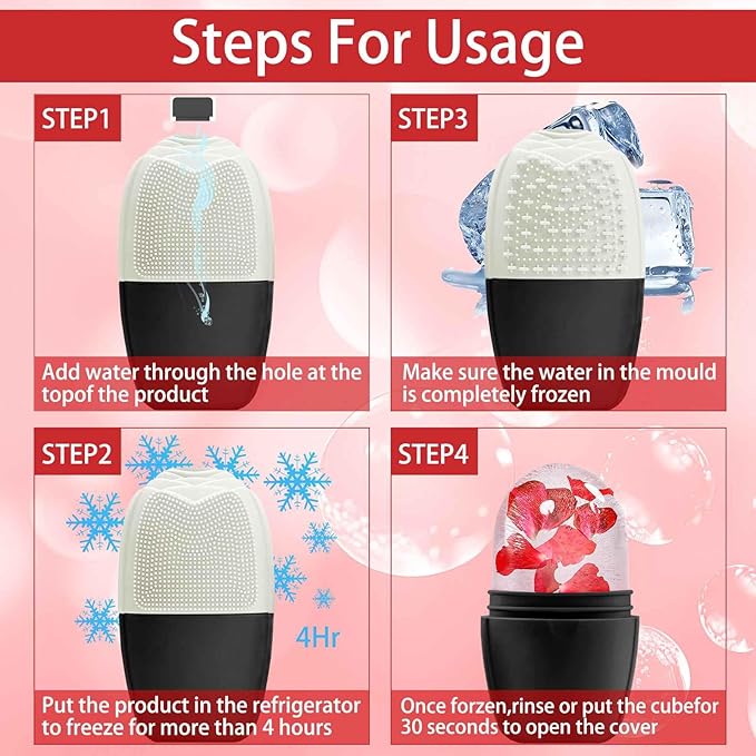 - ππΌ EASY TO USE: Fill the ice roller massager mold with water. Freeze in refrigerator for more than 4 hours,when using it apply the ice to your skin in 30 second intervals in circular motions. For optimal results, It is recommended to use 1 or 2 times a day