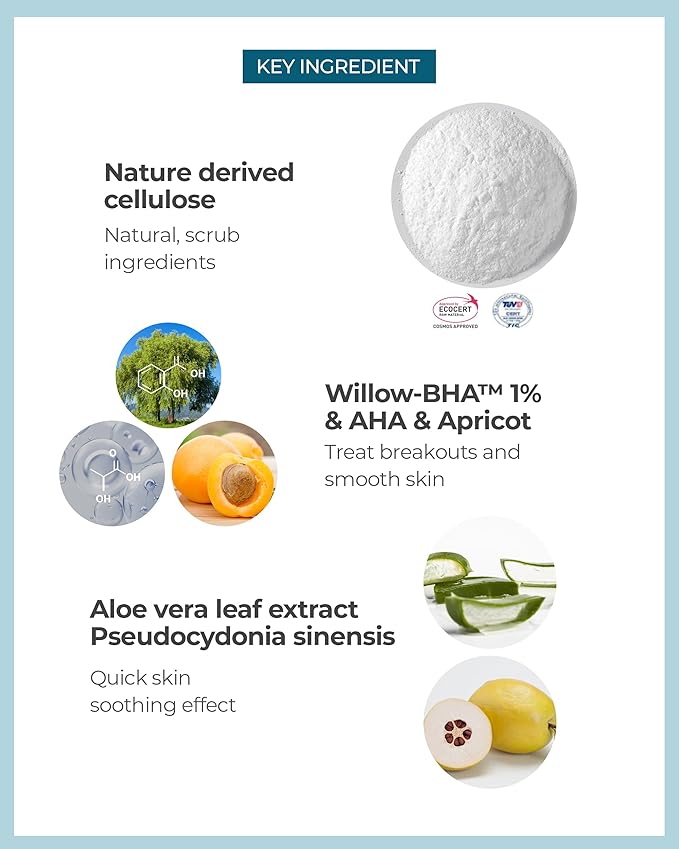 - RAPID AND EFFECTIVE EXFOLIATION: Experience fast and efficient exfoliation with the BHA+ Pore Zero 30 Second Exfoliator. This product combines plant-based cellulose and powerful exfoliants like Willow-BHA and AHA to control sebum and provide a quick, gentle peeling, transforming your skin in under a minute.