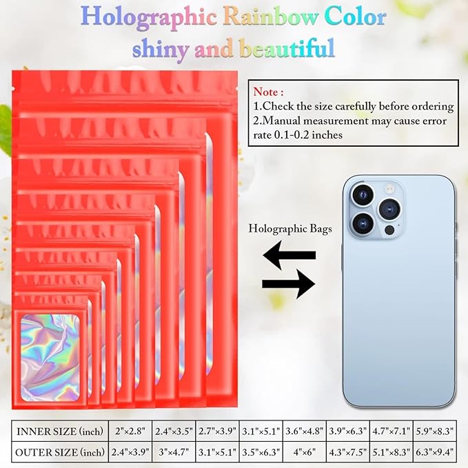 - PACKAGE INCLUDES: You will receive 100 pieces of holographic packaging bags, enough quantity for your daily use and replacement. You can send holographic bags to family and friend. Mylar bags can also serve as good decoration bag