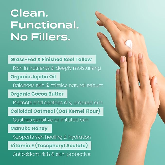 - Quality You Can Feel: Our balm is crafted in the USA using 100% grass fed cow tallow, Manuka honey, and other natural, skin-loving ingredients. Free from parabens, and toxins—just pure, effective skincare you can trust.