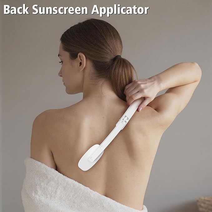 - 【Back Self Tanner Applicator】Open 13.8", fold 7.3", easy to store & carry. This foldable back lotion applicator is composed of a durable ABS handle and a soft sponge pad, for easily apply lotion, self-tan, and sunscreen. Note: Rinse & clean after use, and dry in a well-ventilated area.