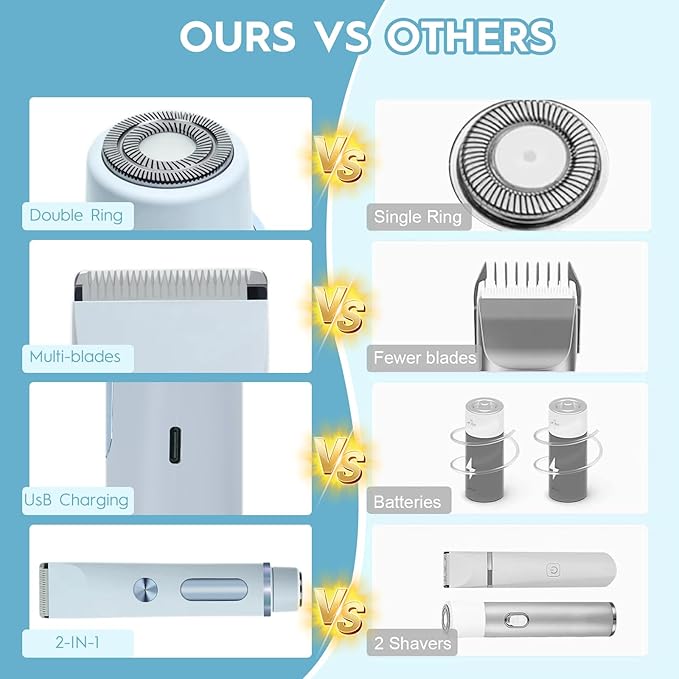 - ⚡【Effortless Efficient Hair Removal】Wave goodbye to razor burn and ingrown hairs with our quick and easy grooming solution for your bikini area—no pain, just smooth sailing!
