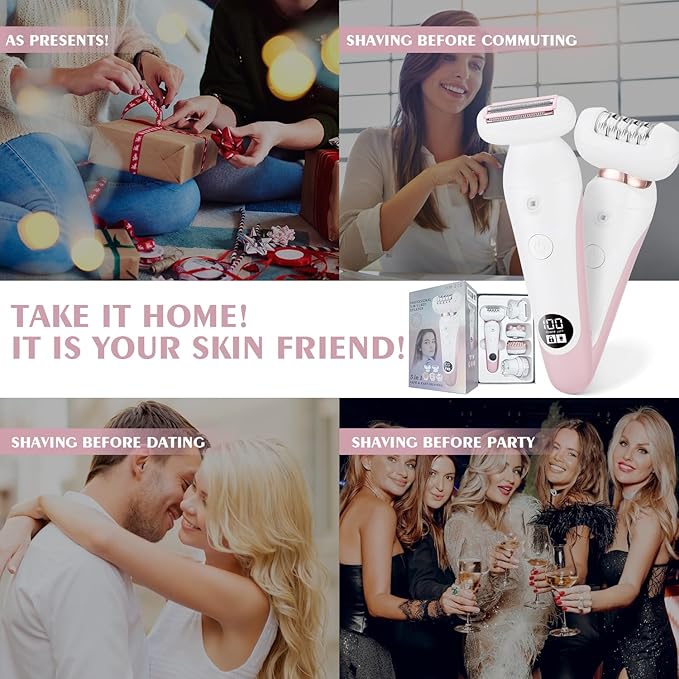 - epilato5 in 1 Multi-functional Shaver: (Versatile blades razor)-- Electric razors for women with straight blades and floating foil blades designed for full-body shaving. Sharp-razor of electric razor for women with hypo-allergenic stainless steel blades helps customize hair shaving on your arms, legs, body, armpits, and bikini lines in minutes without any residue, pain, or irritation, even fit for sensitive skin. You can also use the shaver head to cut the hair short before epilation for best results.rs hair removal for women